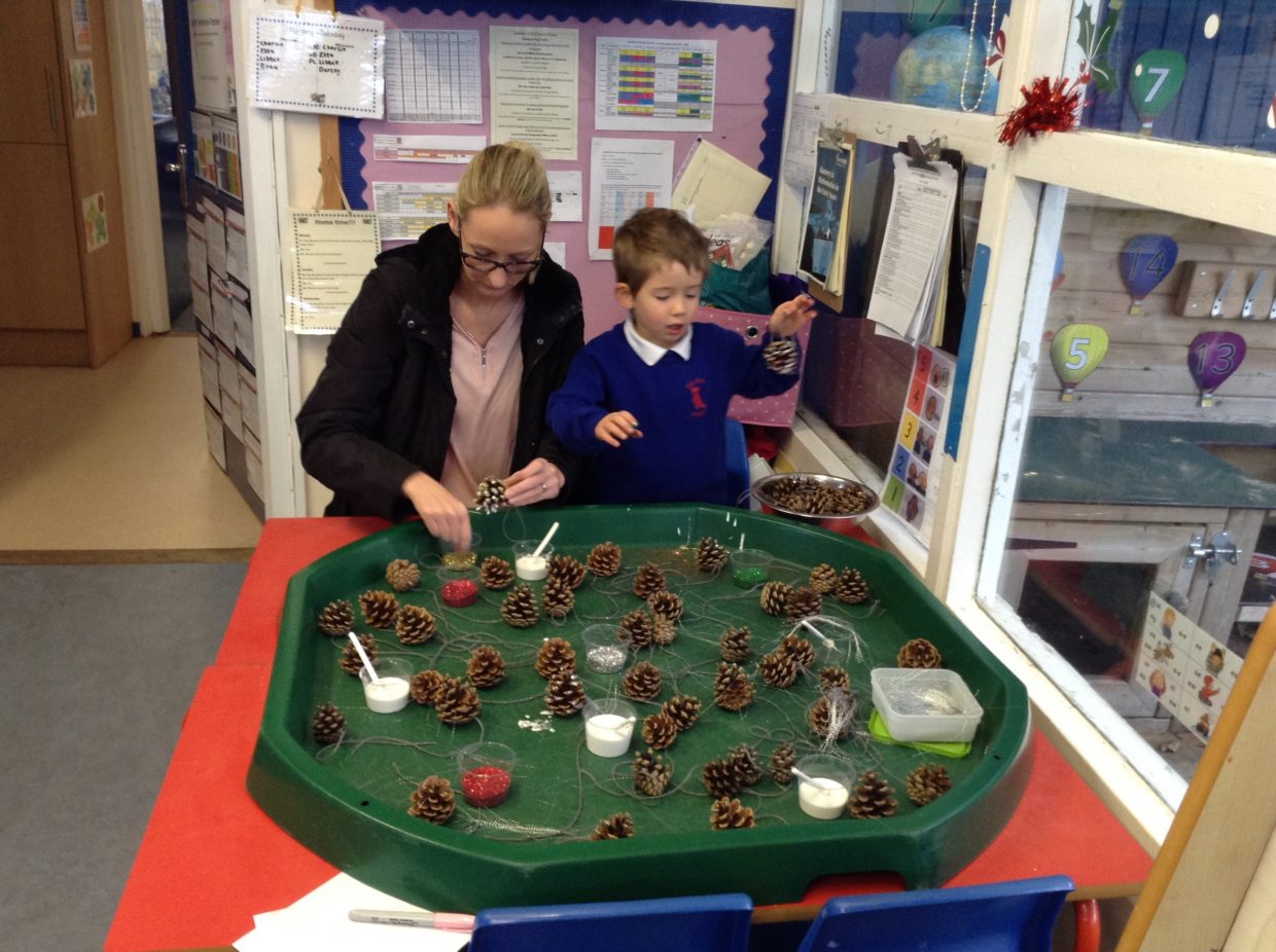 Parents, children and staff enjoyed a host of Christmas activities including turning the climbing frame into a Christmas tree with decorations galore, decorating Christmas visits, making and writing Christmas cards and present labels and a whole host more. Many thanks to the team for organising this event and a huge thank you to all the parents for taking time out of busy schedules to come and learn alongside the children.